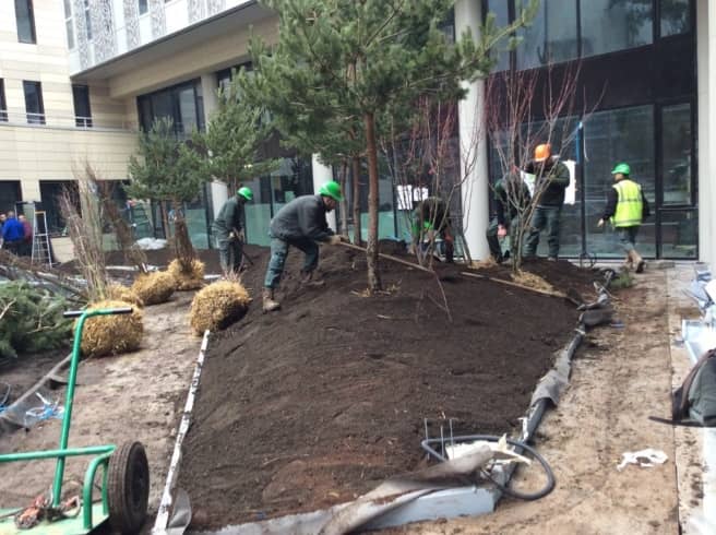 La dimension des arbres à la plantation est souvent contrainte à cause du poids limite pouvant être accepté sur la dalle : souvent 200 à 350 Kg/m² de charge induite pour les arbres, donnée variable selon la construction.