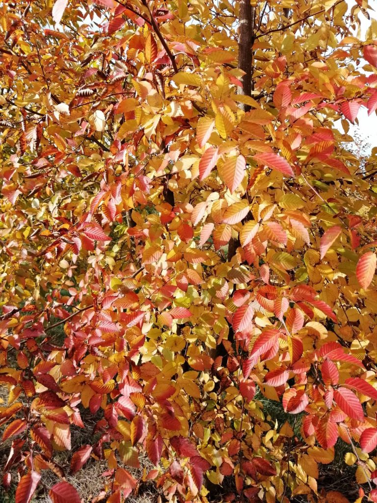 Très bel arbre vigoureux à rameaux fins. Petite feuille ovale de 2 à 6 cm de long et de 1 à 4 cm de large, virant à l’orange foncé à l’automne. Employé en alignement, haie et en isolé.