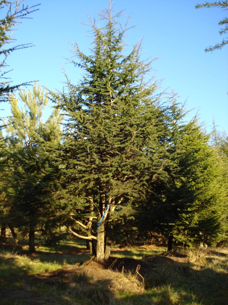 Cèdre du Liban issu de graine. Tous types de sols sauf trop humides. Remarquable port tabulaire en vieillissant