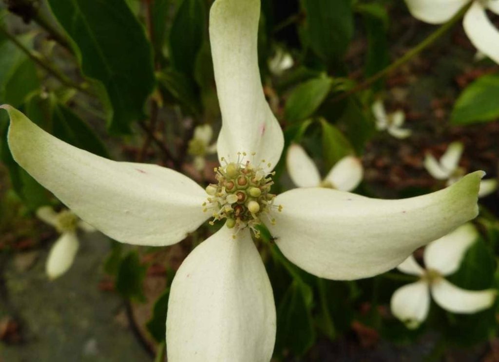 Petite feuille, verte puis brune à l’automne. Fleurs entourées de 4 grandes bractées blanc crème de juin à juillet. Sol frais, humifère, non calcaire. Exposition : soleil à mi-ombre. Résistant jusqu’à -15°C. Employé en massif et en isolé.