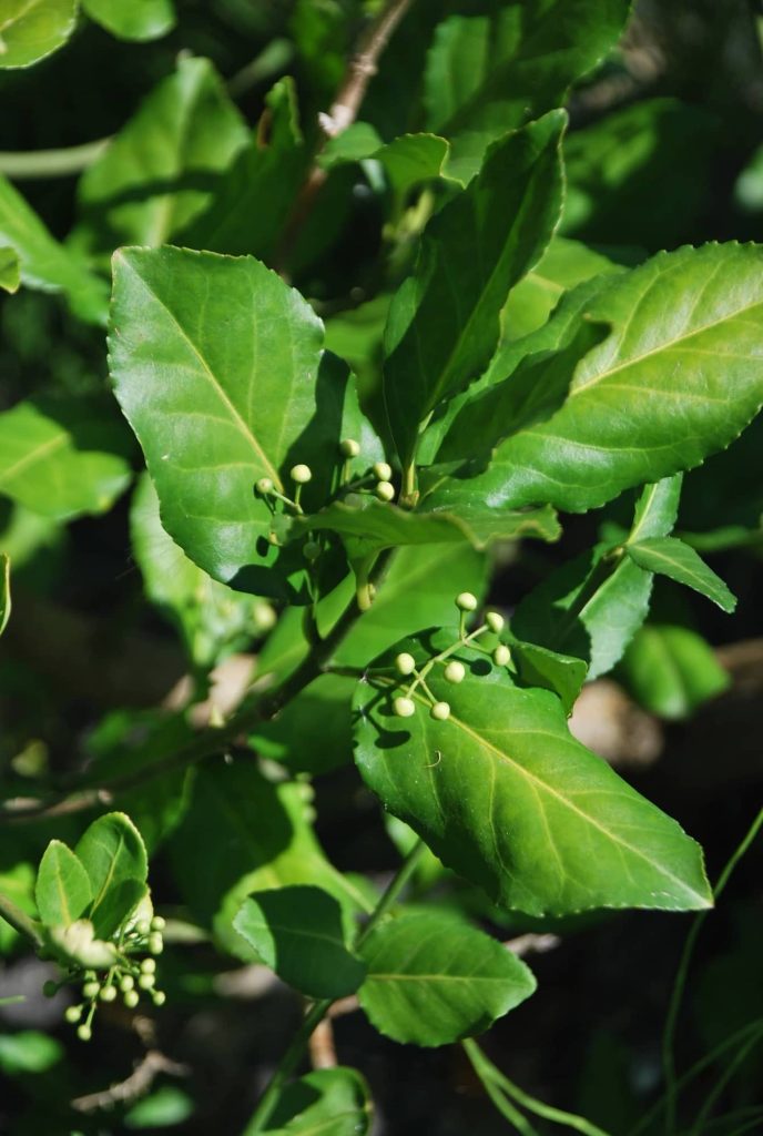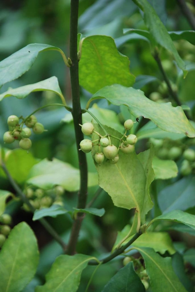 Très rustique et non gélif. Tous types de sols même calcaires, sauf trop secs. Végétation aussi large que haute. Une fois développée, cette plante ne nécessite plus d’entretien. Feuille ovale vert foncé rougissant de l’automne au printemps mais persistant sur l’arbuste. Magnifique fructification rose-orangé en automne. Arbuste de grande valeur, très ornemental toute l’année. Employé en jardin d’hiver, massif, bordure, jardinière. Densité : 1 u/m².