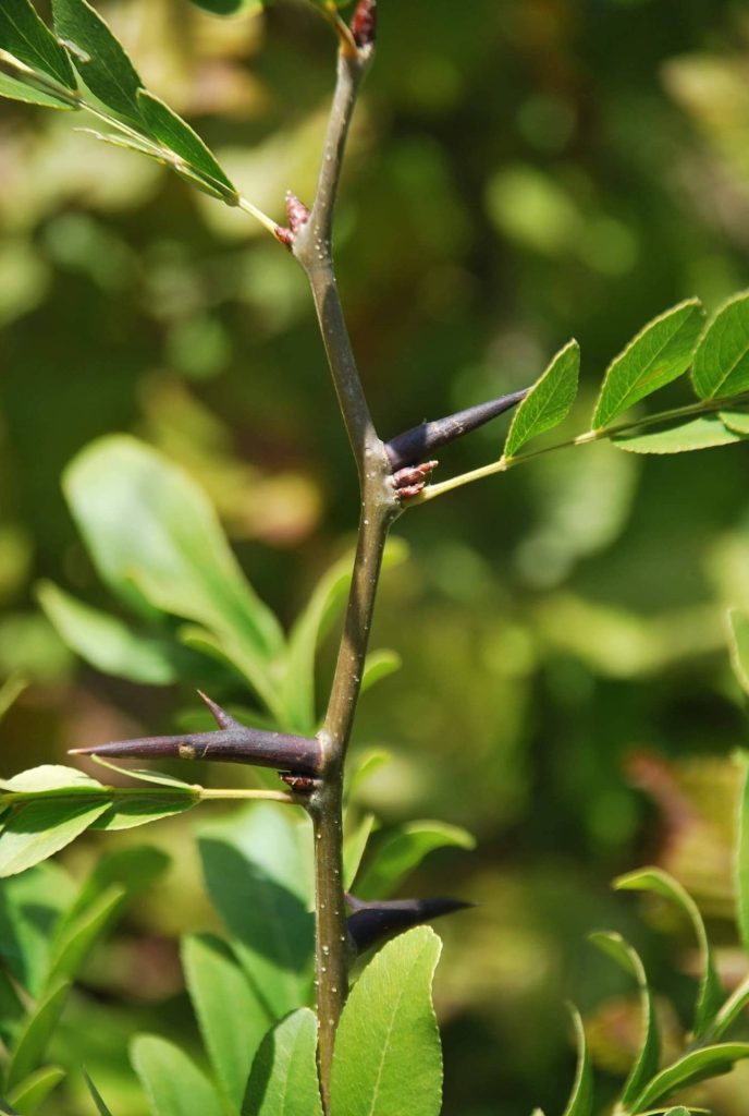 Mêmes conditions que ‘triacanthos’. Intéressant par la densité de ses épines acérées, peut former des haies infranchissables où le besoin de protection est maximum.