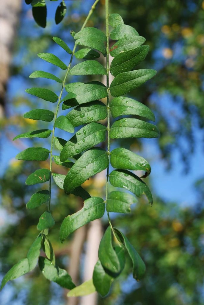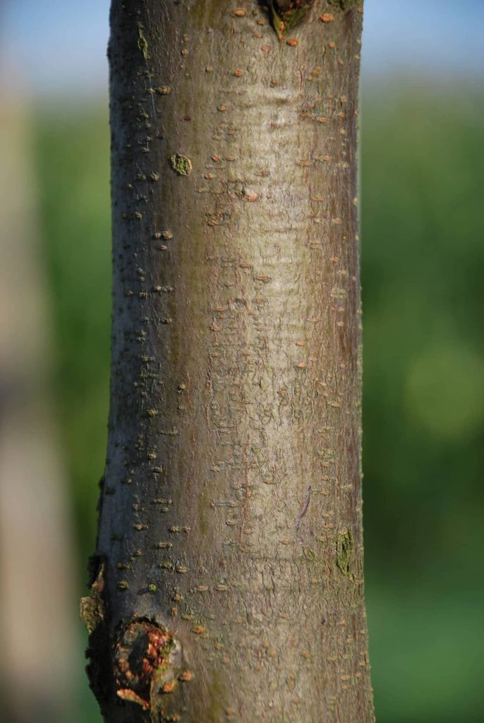 Même qualité d’adaptation que le ‘type’. Port plus élancé et régulier, parfaitement inerme. Excellent arbre d’alignement.