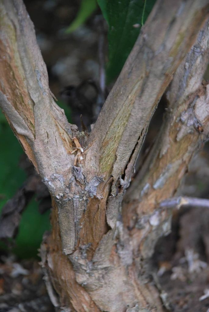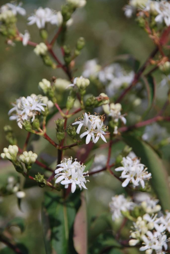 Grand arbuste de stature délicate. Il fleurit en grandes ombelles blanches en fin d’été. La fructification est tout aussi ornementale car les sépales rouge vif étoilés perdurent longtemps. L’ écorce s’exfolie en longue bande brun clair. La grande feuille verte reste longtemps sur l’arbre. Tous types de sols. A planter en isolé.
