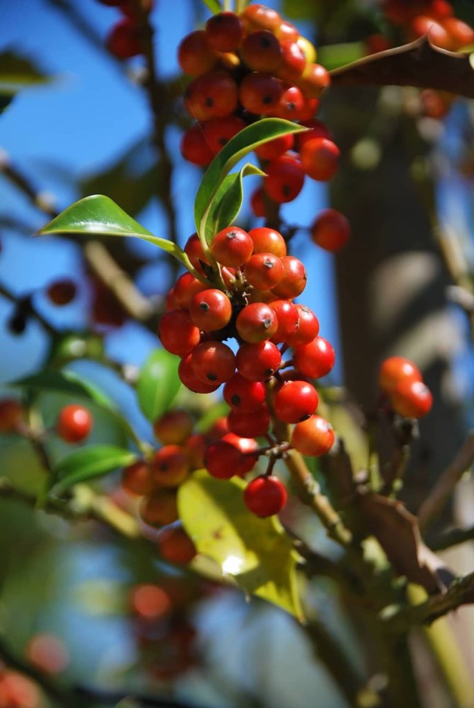 Végétation plus compacte, feuillage vert brillant, très fructifère, autofertile.