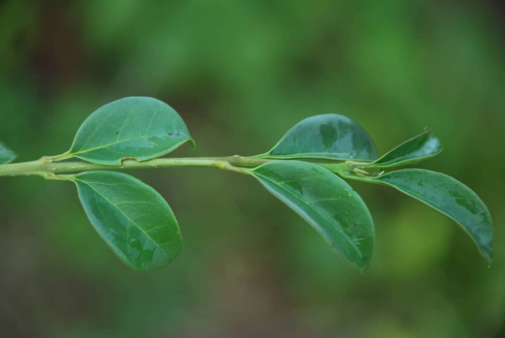 Arbuste compact, dense au feuillage pointu d’un vert brillant. Floraison estivale blanche teintée de pourpre, mellifère, puis baies bleu-noir en hiver. Idéal pour l’art topiaire. Sol ordinaire mais drainé. Exposition ensoleillée à mi-ombragée. Rustique jusqu’à -13°C. Employé pour haies.
