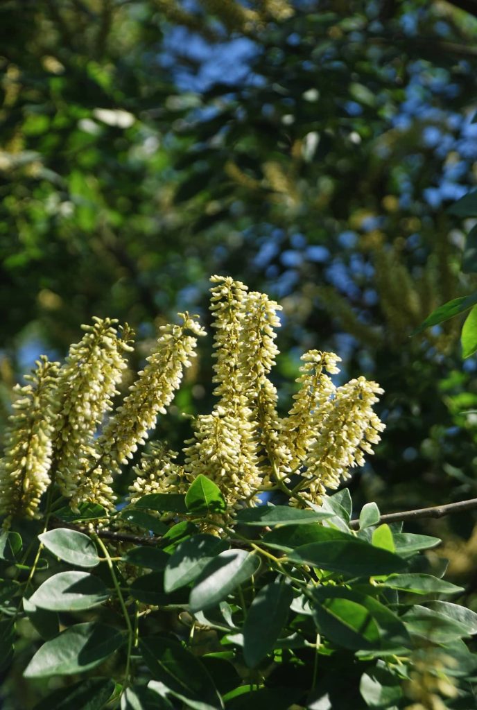 Arbre à port très régulier, remarquable par son feuillage juvénile aux reflets gris métallique. Floraison blanche dressée en fin d’été.