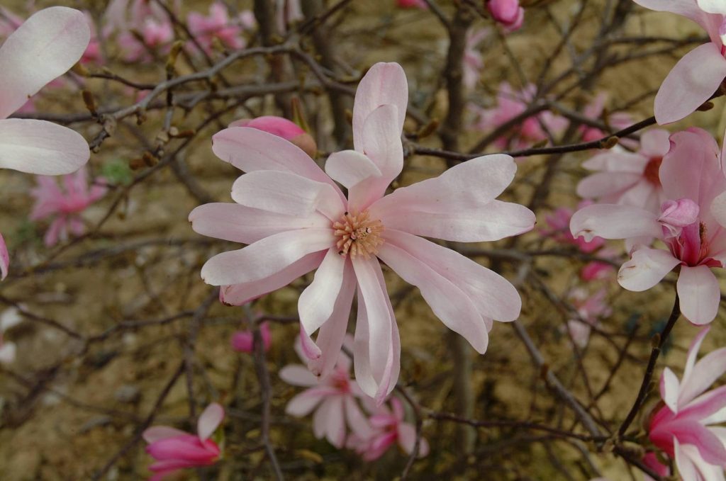 Arbruste buissonnant au port arrondi de taille moyenne. Belle floraison rose en avril. Pétales dissociés en étoile comme un stellata ( dont il est d’ailleurs issu). Très bel arbuste à isoler.