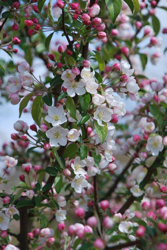 Enracinement faible semi-plongeant, résistant au calcaire. Variété très intéressante, vigoureuse, feuillage sain vert luisant. Boutons rouge-rose s’ouvrant blancs mi-avril, pétales veinés de rose, floraison très appréciée. Fruits jaune-orangé.Arbre d’alignement très intéressant pour ses qualités esthétiques, sa résistance aux maladies, sa vigueur et sa capacité d’adaptation en milieu urbain.