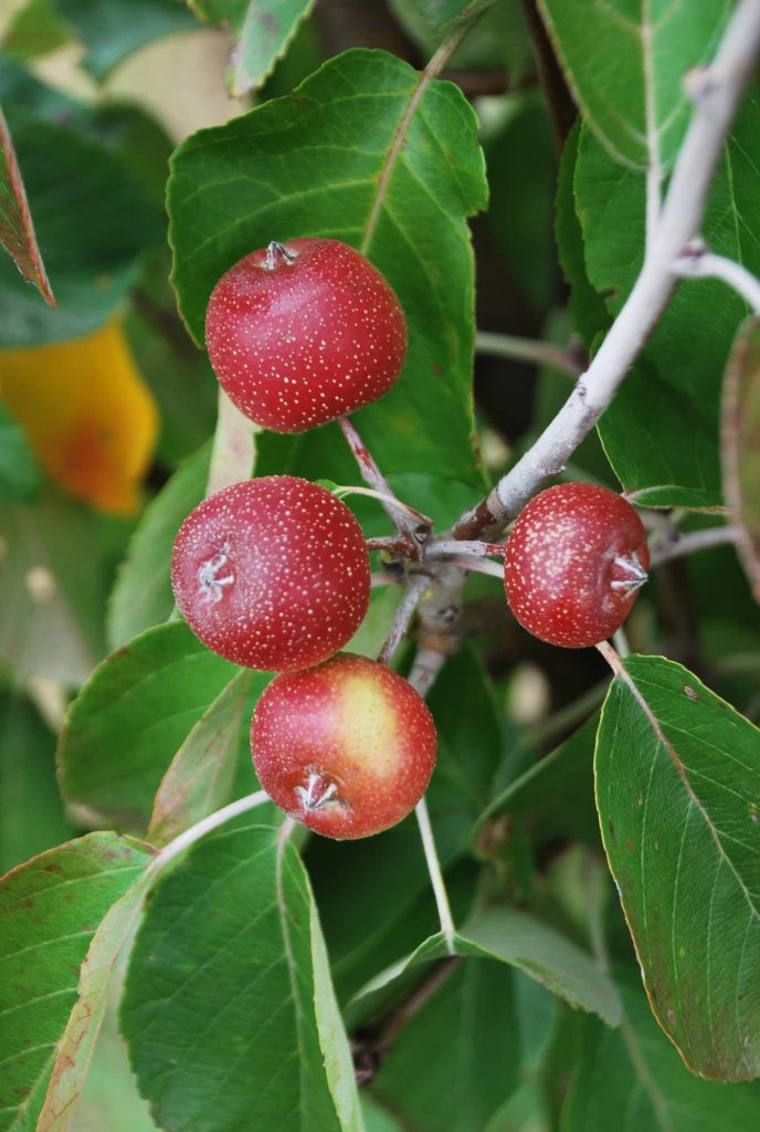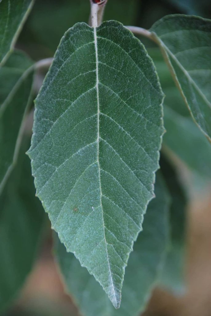 Tous types de sols, espèce rustique à port pyramidal et au feuillage argenté. Discrète floraison blanche fin avril. Magnifique coloration rouge-orangé à l’automne.