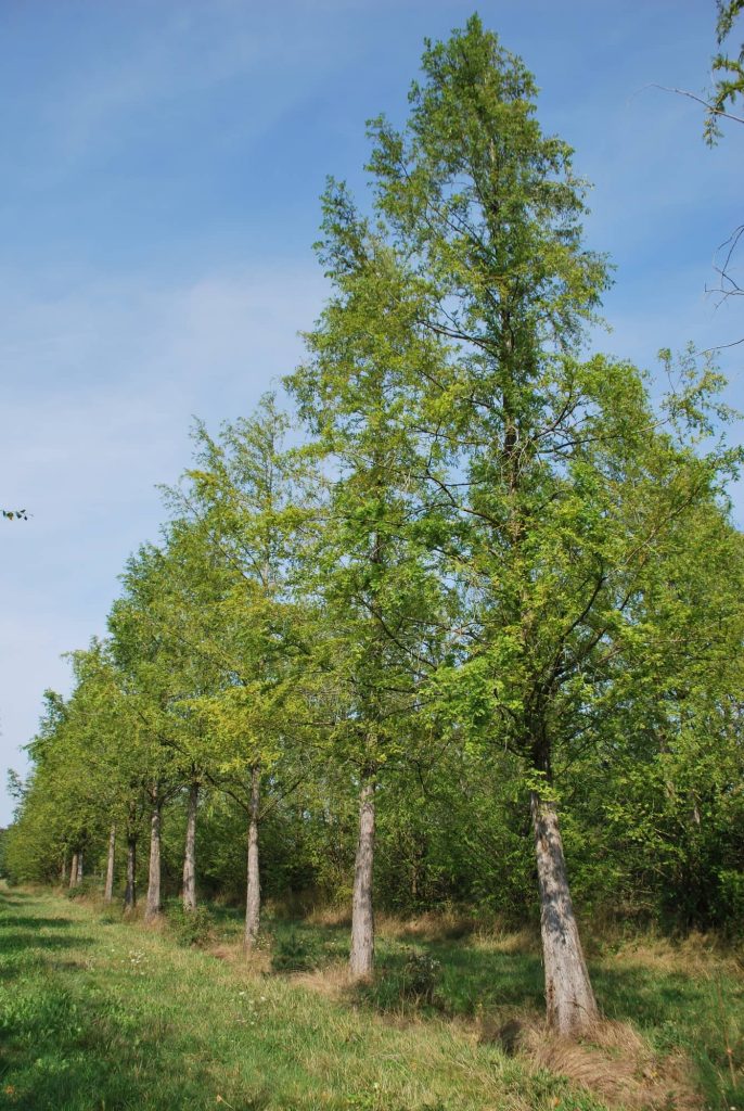 Feuillage caduc léger. Port symétrique régulièrement conique. Il préfère les atmosphères et sols pas trop desséchants. Belle coloration automnale rose-brun. Aspect noueux au collet.