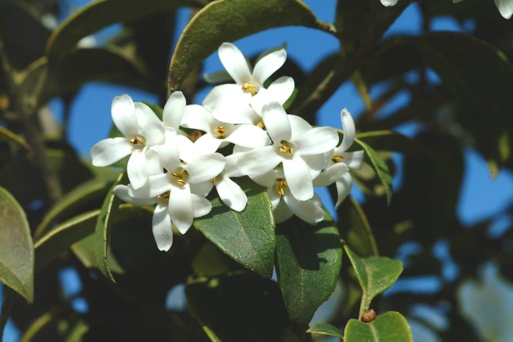 Arbuste de petite dimension idéal partout où l’on ne souhaite pas de végétation trop rapide et trop forte. Floraison blanche très odorante.