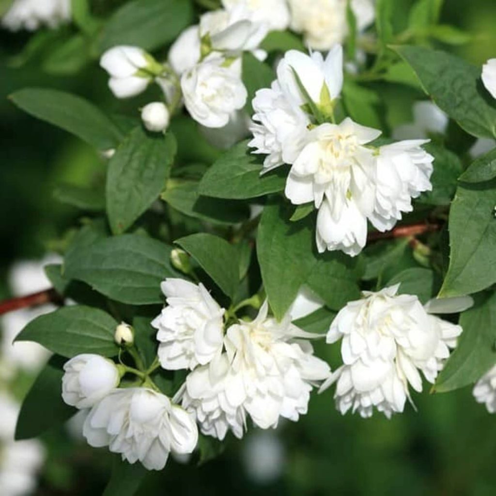 Petit arbuste à fleur blanche groupée par 3 parfumée en juin-juillet. Branches fines légèrement arquées. Tous types de sols. Idéal pour petit jardin et massif.