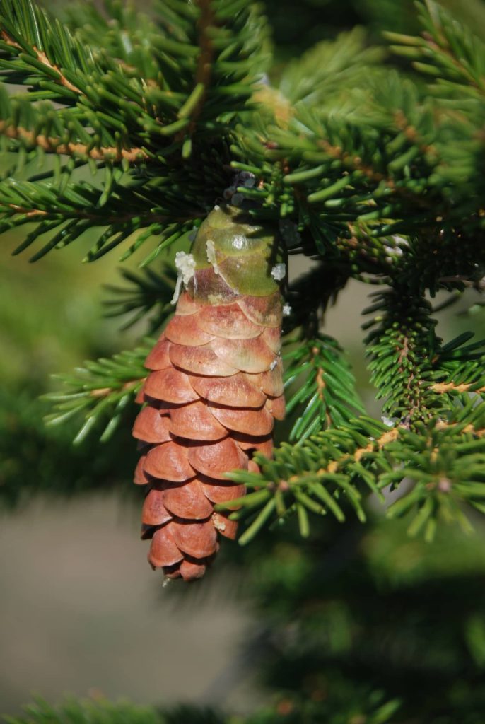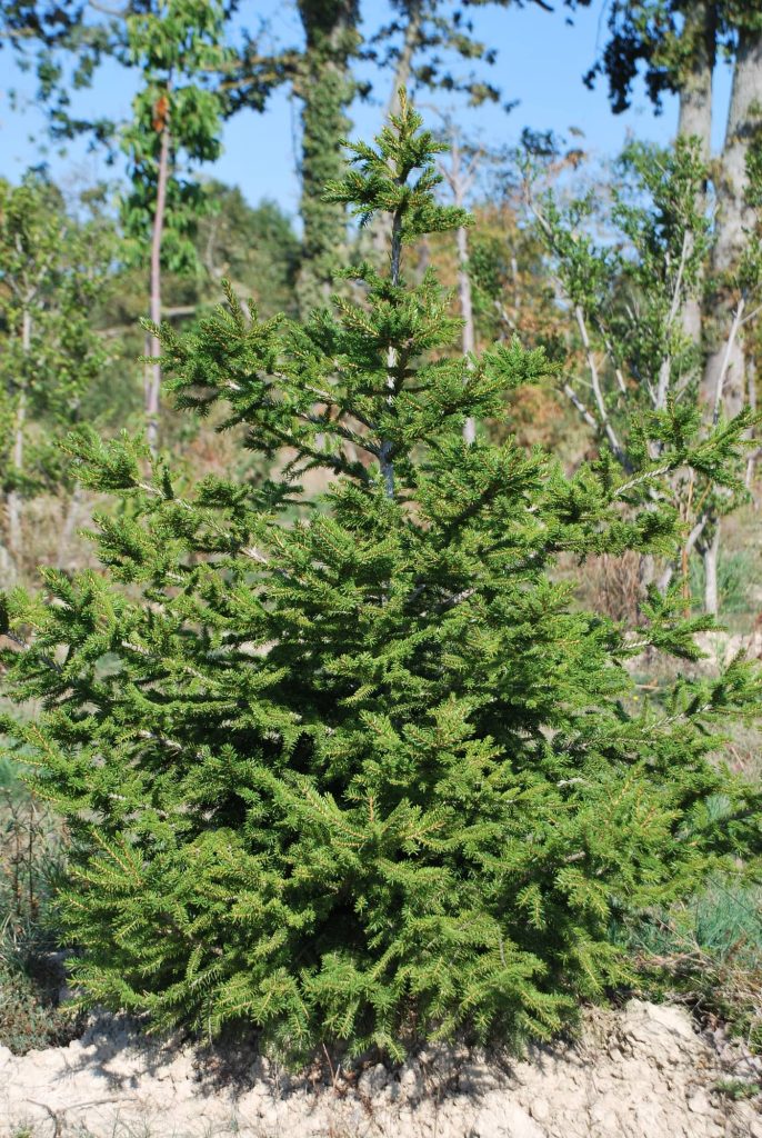 Aiguille la plus courte de tous les épicéas. Jeunes pousses vert tendre contrastant sur le feuillage vert foncé. Petit cone étrois de 5 à 9 cm de long rouge-violacé à l’état jeune. Tous types de sols sauf trop secs. Tolère le calcaire. Plante de parc, isolé