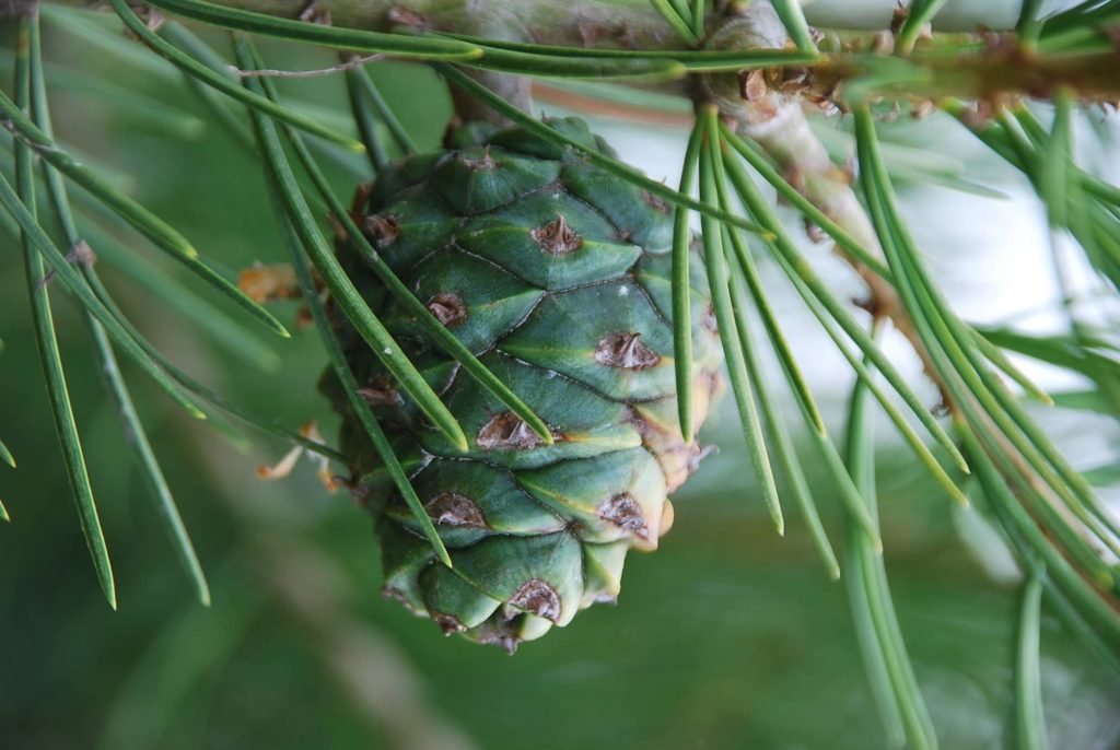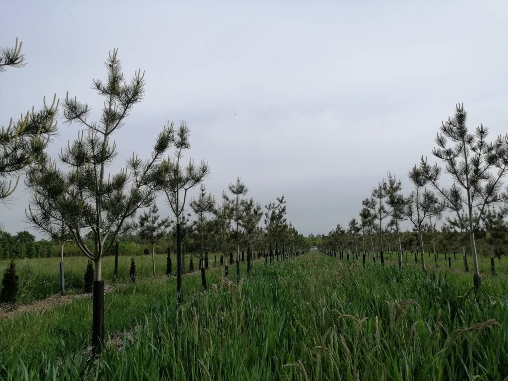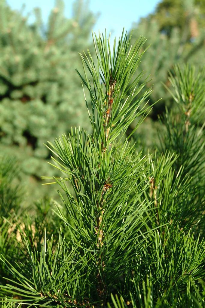 Arbre mythique en Chine et en Corée. Forme souvent en cépée. L’écorce lisse se détache en plaques formant une mosaïque vert olive, beige et grise. Les aiguilles groupées par 3 sont d’un vert clair très lumineux. Plante de très grande valeur ornementale, il peut être planté en zone méridionale