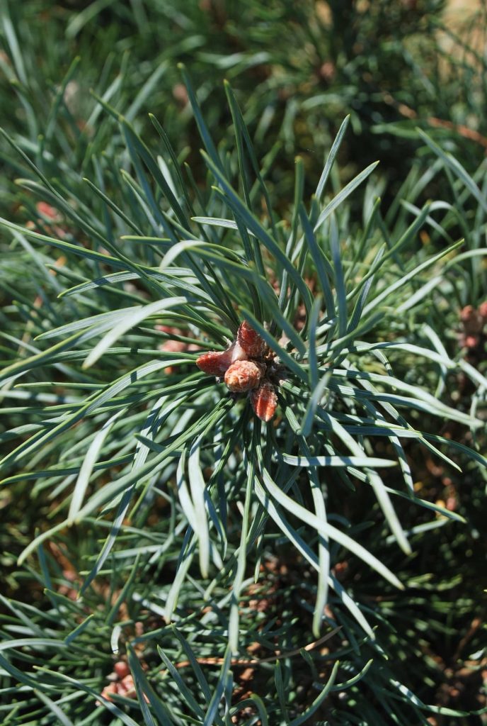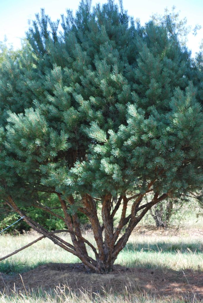 Conifère nain compact à croissance lente. Aiguille courte, bleutée. Très belle écorce devenant orangée en vieillissant. Sol indifférent, pas d’excès d’eau