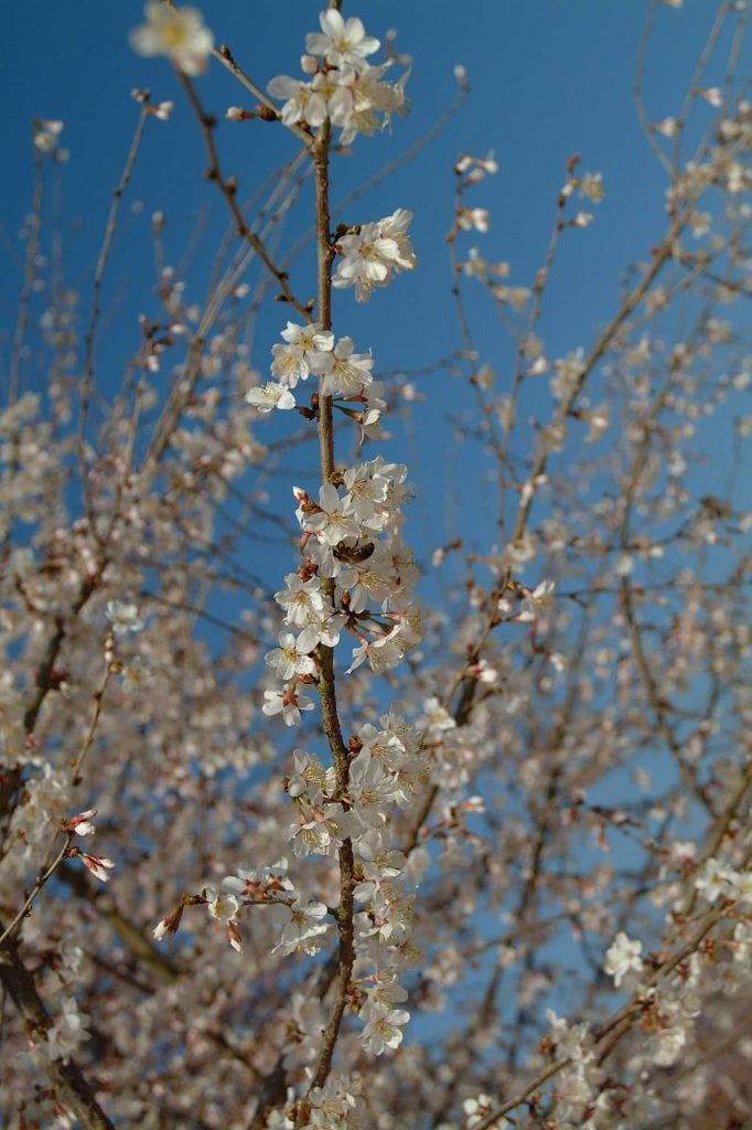 Port évasé, feuillage léger fortement incisé sur le bord du limbe. Forte floraison blanc-rosé en avril, fleurs simples. Coloration jaune-orangé à l’automne.