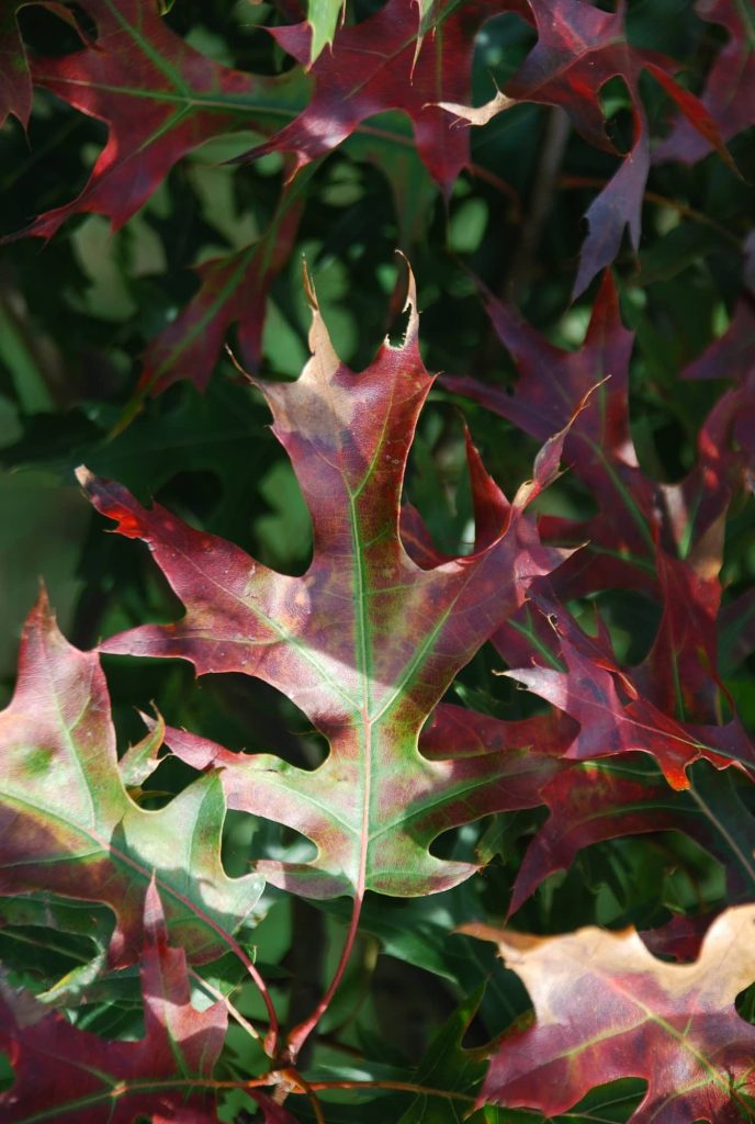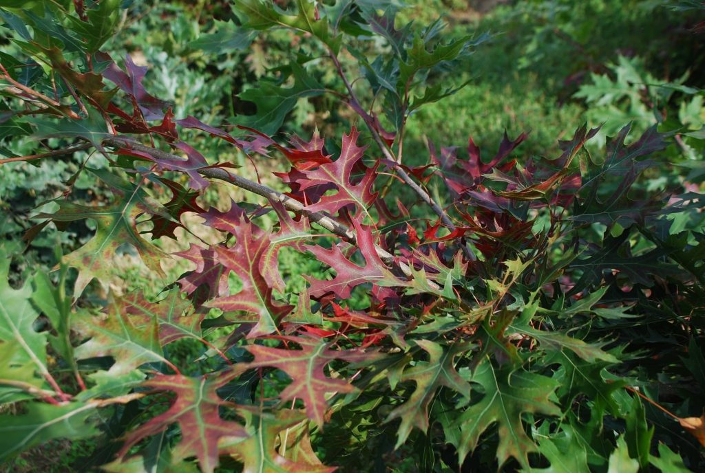 Enracinement plongeant. Arbre de moyenne grandeur. Mêmes exigences que Q. Palustris, meilleure résistance au calcaire. Se distingue des autres chênes par ses remarquables colorations automnales rouge-écarlate. Arbre de parc en isolé et d’alignement en tige.