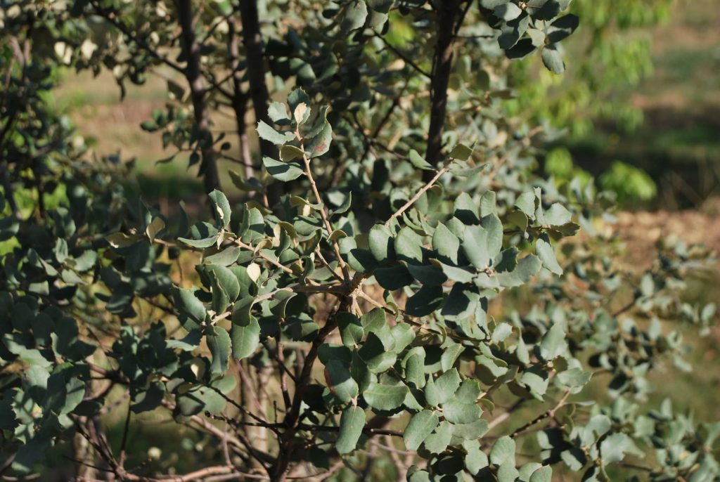 Proche de Quercus ilex, sa feuille petite, arrondie est pubescente et de couleur vert-gris sur la face supérieure. Il résiste aussi bien au climat très sec que rigoureux. Eviter l’excès d’eau, il peut se contenter de 300 mm par an !! Employé en massif et en isolé.