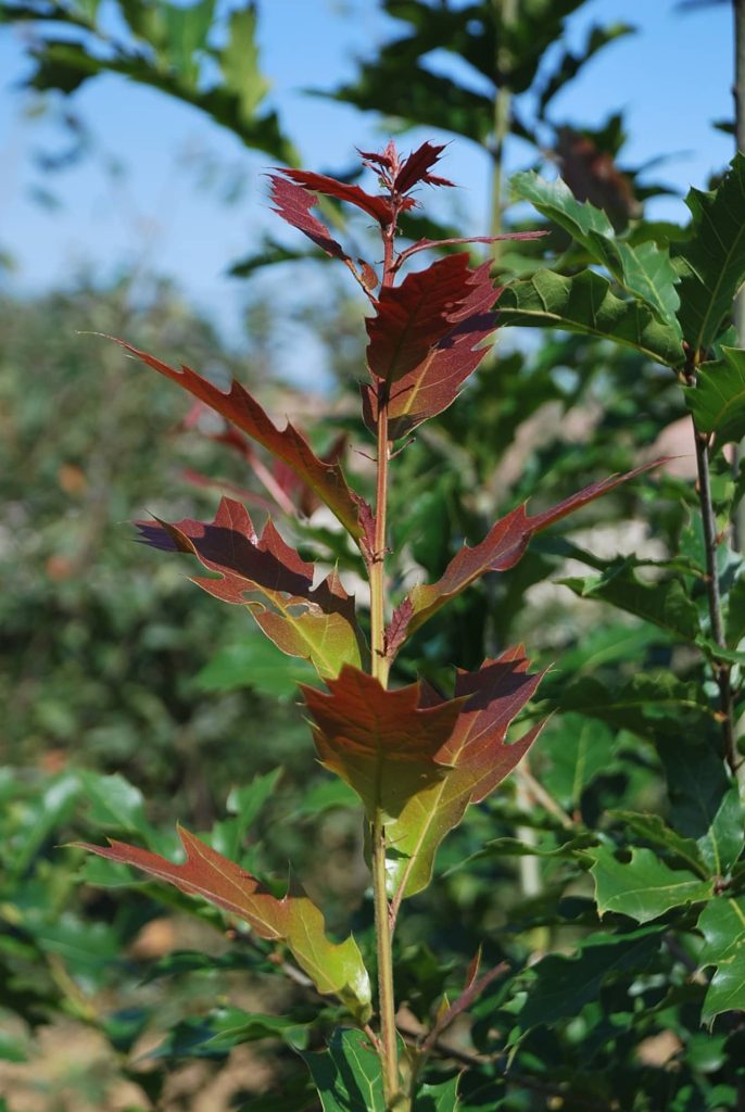 Hybride naturel obtenu par le croisement de l’espèce type avec rubra. Nous sélectionnons nous-mêmes les sujets issus de nos semis. Arbre à croissance rapide de moyen développement à feuillage subpersistant (chute d’une partie des feuilles au printemps). Il peut cependant perdre son feuillage pendant l’hiver dans nos régions aux hivers froids. La feuille est coriace et gaufrée, dentelée chez certains sujets. Tous types de sols, même secs et calcaires à légèrement acides. Très bel arbre de parc ou d’alignement adapté au milieu urbain.