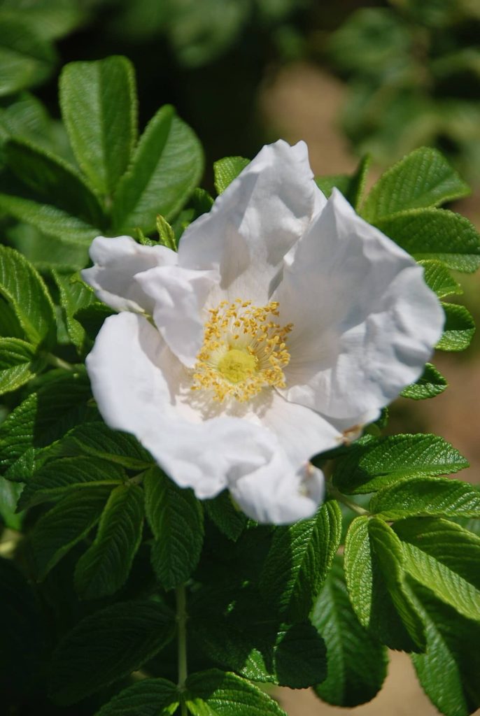 Arbuste vigoureux, drageonnant. Extrêmement résistant, tant au sec qu’aux embruns et ainsi qu’au sel de déneigement. Grosse feuille gaufrée, floraison odorante rose vif. Gros cynorhodons au goût de prune, riches en vitamine C.