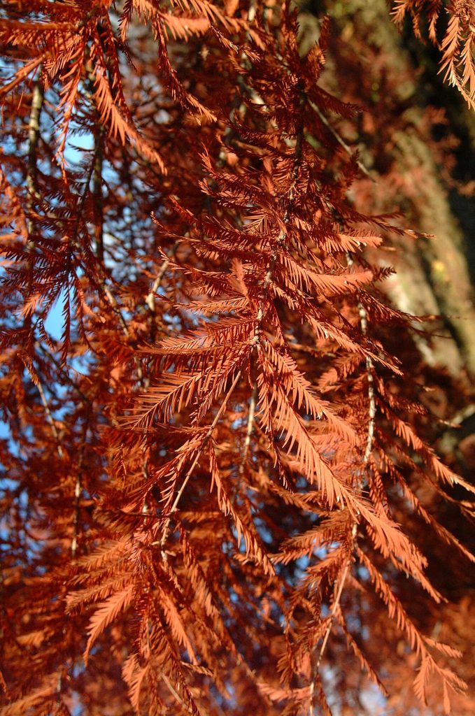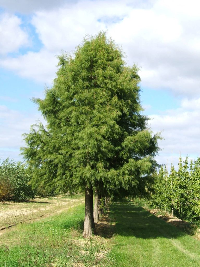 Conifère poussant en zone marécageuse, mais qui peut s’adapter à des sols plus secs. Sur terrain très humide, il forme des excroissances au niveau du sol appelées ‘pneumatophores’. Très belles et longues colorations automnales rousses. Peut croître en zone méridionale à condition de trouver un sous-sol frais.
