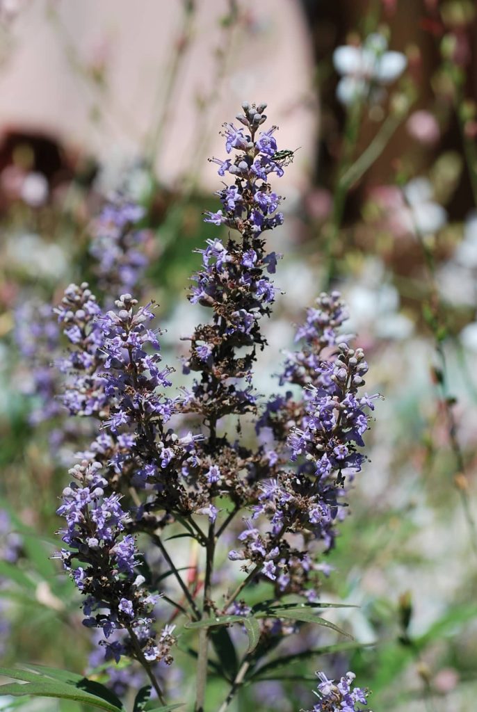 Le gattilier est vigoureux et rustique. Feuille composée palmée. Fleurs en épi bleu-violacé d’août à octobre. Cette espèce mellifère croît en sol pauvre, sec à très sec mais drainant. Utilisé en massif.